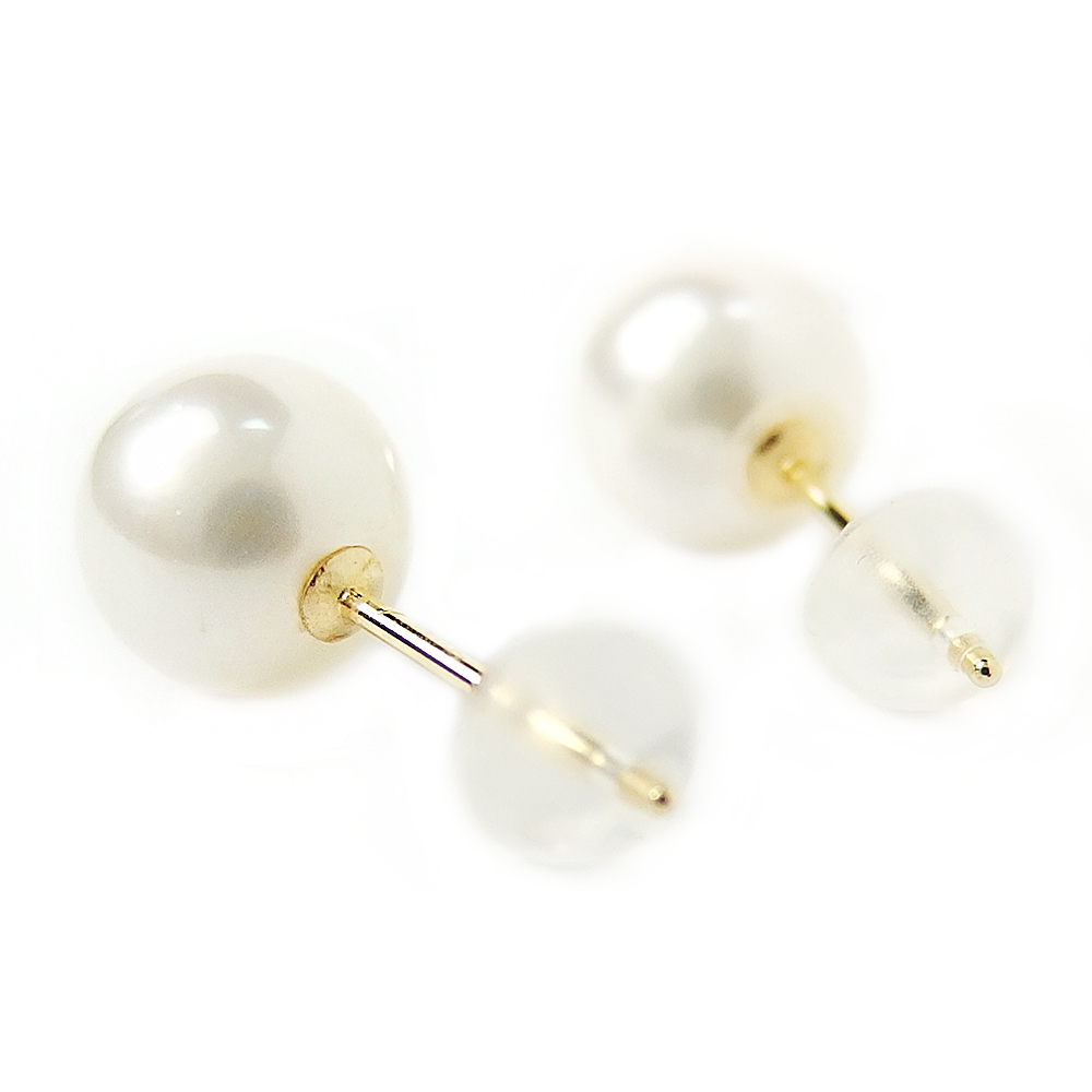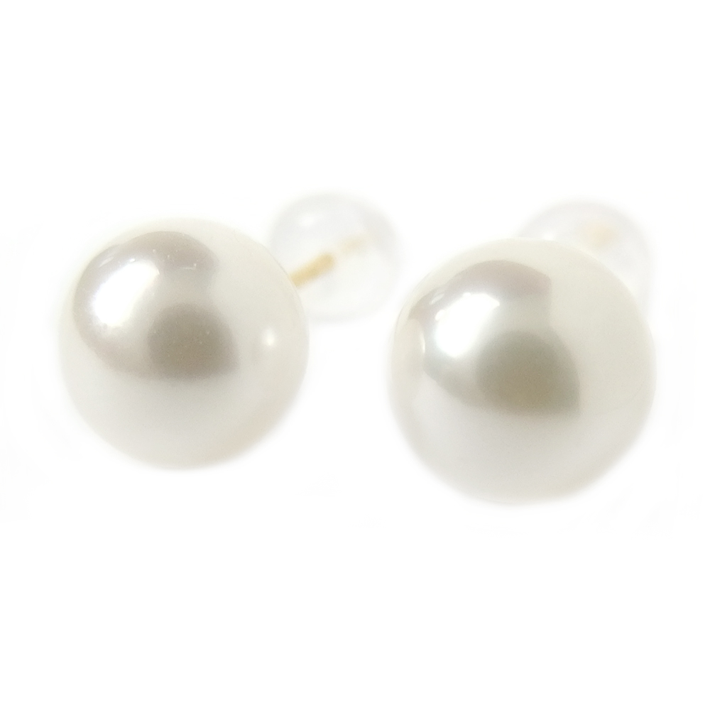 ピアス アコヤ真珠 K18 イエローゴールド 7~8mm 7~8ミリ珠 パール 本真珠 あこや真珠 シリコン製ダブルロックキャッチ スタッド